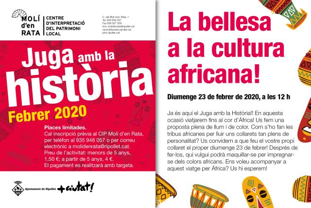 El taller convida a abillar-se amb elements propis de la cultura africana. Preu: 4 euros (el pagament només es realitzarà amb targeta). Inscripcions a molidenrata@ripollet.cat.