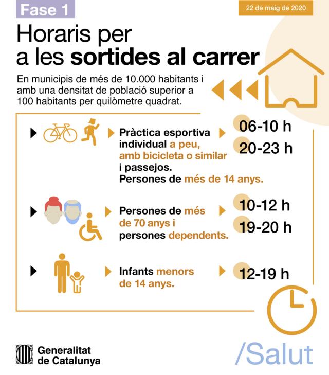 Horaris per a les sortides al carrer durant la fase 1