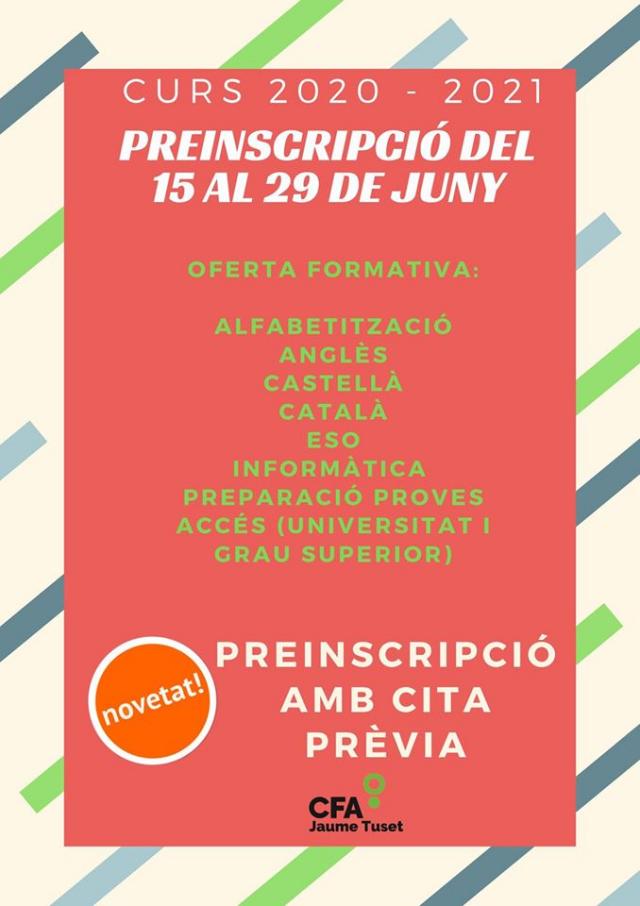 El CFA Jaume Tuset ha obert les preinscripcions per al pròxim curs 2020-2021 en els estudis de: