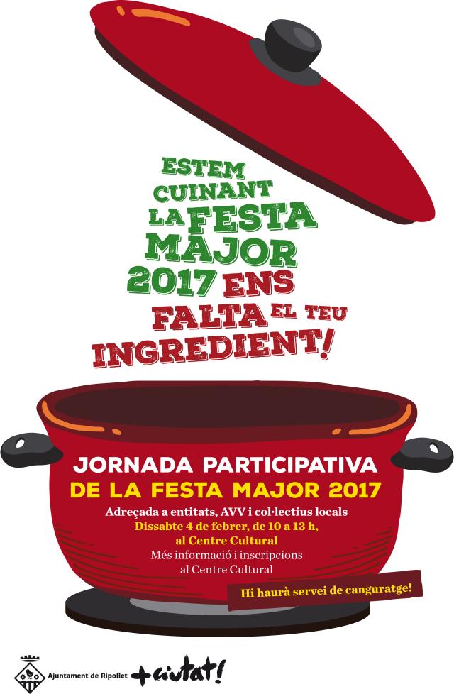 Adreçada a entitats, Associacions de Veïns i col·lectius locals. Més informació i inscripcions al Centre Cultural. Hi haurà servei de canguratge