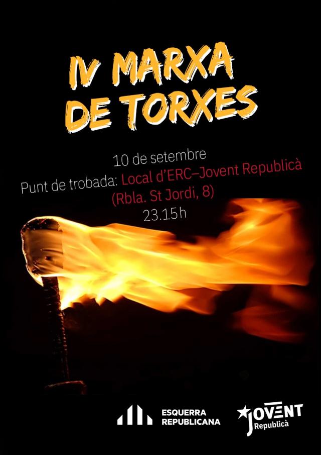 Esquerra Republicana donarà el tret de sortida a les celebracions de la Diada a Ripollet amb la seva quarta Marxa de Torxes la nit de dimarts 10 de setembre, vigília de l'11S. La sortida de la marxa serà a un quart de dotze de la nit de la seu d'ERC-Jovent Republicà, i caminarà fins la plaça d'Onze de setembre, on es llegirà un manifest davant el monument de Rafael Casanova.
